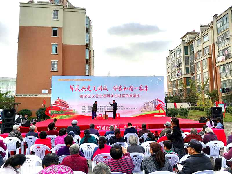 为弘扬中华优秀传统文化,坚定文化自信,丰富群众的业余文化生活,10月17日,“军民共建文明城 邻家和谐一家亲”琅琊区文艺志愿服务进社区联欢演出在清流街道创业北路社区市民广场举办,为群众送上了一场精彩的文艺盛宴。
