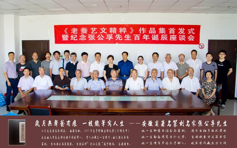 张公孚先生原名张硕泉,祖籍全椒,1917年生于盱眙县明光集。他出身贫寒、天资聪慧、敏而好学,早年为避战祸,举家来到明光,自小得到祖父的熏陶和指教,他博览群书、痴迷于书法、篆刻,临摹创作大量书法篆刻作品。他真、行、草、隶、篆各种书体俱佳,尤精篆刻,且功力深厚,曾荣获安徽省书画篆刻展一等奖等奖项。2000年张老病逝。其长子张志江历时3年,在相关人士帮助下,精选部分书法、篆刻、随笔、诗词等由黄山书社正式出版。座谈会上大家对张公孚先生为人胸襟坦荡、严于律己;从艺勤奋刻苦、孜孜以求给予高度评价;张公孚先生的女儿张志华深情回忆家规甚严的父亲对她人生道路的教育指引。