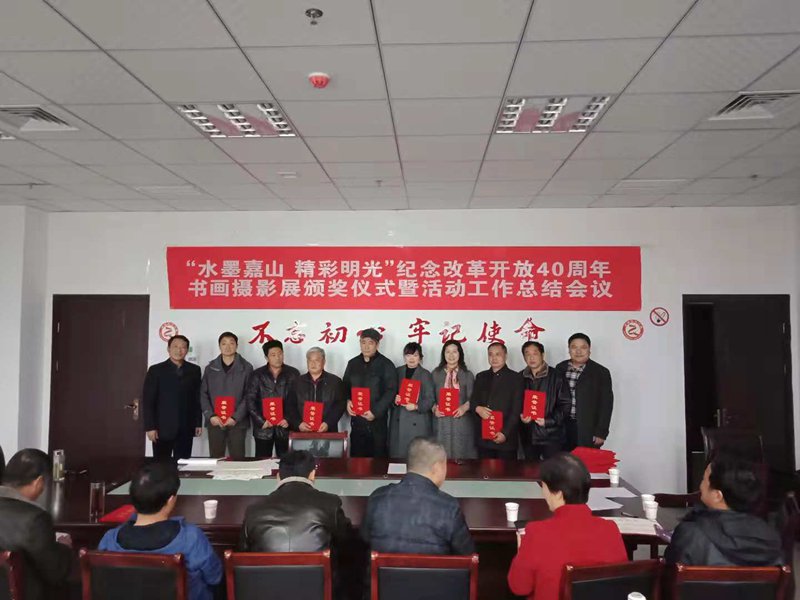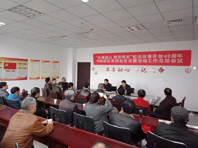 11月29日下午,明光市文联组织召开的“水墨嘉山·精彩明光”庆祝改革开放40周年书画摄影展颁奖仪式暨活动工作总结会议,在明光市文化中心二楼会议室举行。明光市委宣传部副部长、市广播电视台台长秦荣先出席会议并颁奖。书画摄影获奖作者、书法协会、美术协会、摄影协会、三界外美术院负责人参加会议,会议由明光市文联主席任亚弟主持。