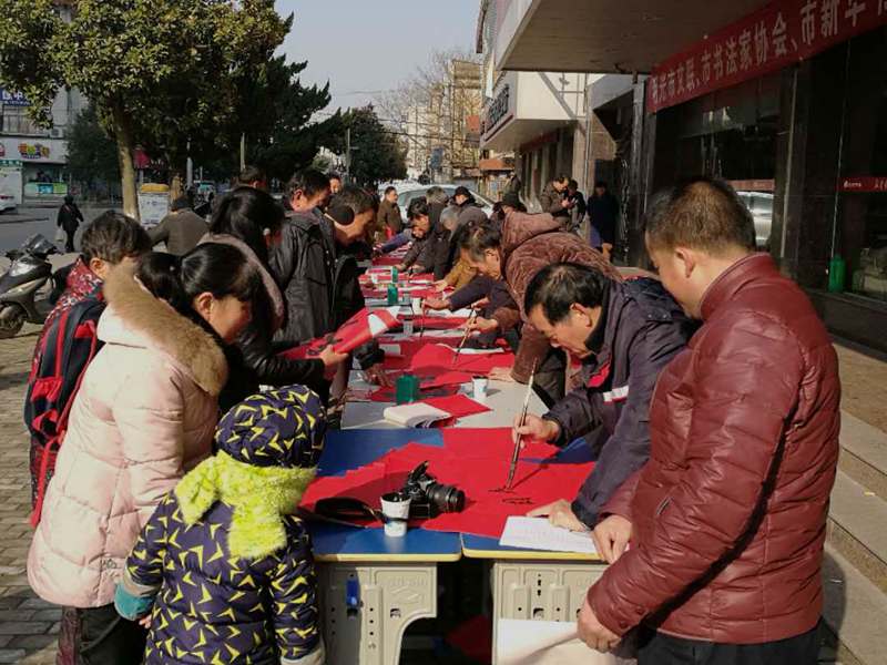 为推动文化大发展大繁荣,1月17日,由明光市文联举办的第十四届“迎新春送写春联”活动,在明光市新华书店广场举行。