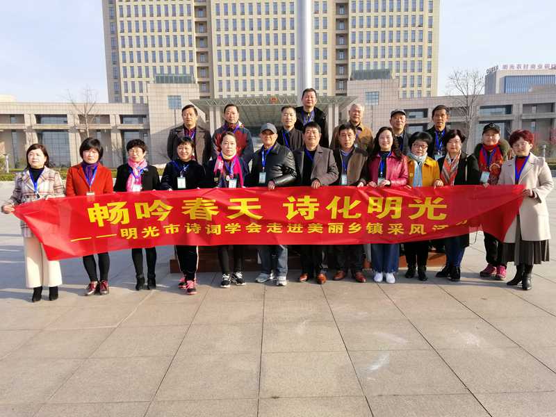 3月16日,明光市诗词学会组织的“畅吟春天,诗化明光”诗词创作采风活动,让别样的春意,溢满诗行。本次活动诗词学会会员走进美丽乡镇,参观了雄伟壮观的女山湖特大桥、生机盎然的金桥湾现代农业示范基地。诗人们用脚步丈量田野,用歌喉畅吟春天。赏美景、看变化、咏时代,一路上有的即兴口占,有的挥毫泼墨。整个活动紧扣时代主题,突出明光特点。会员们一颗颗诗心,在尚美、尚善的土壤里,抛洒才华智慧的甘露,种出姹紫嫣红的诗行。