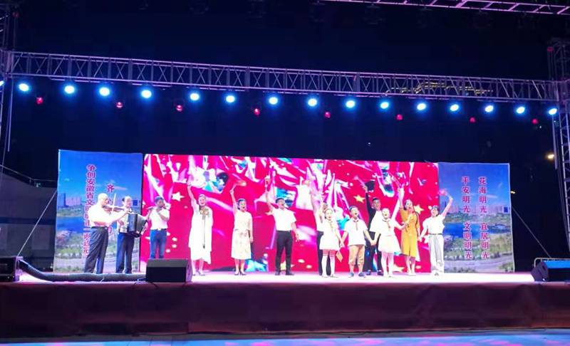 晚会在大合唱《我和我的祖国》中开场,融合了童声、器乐演奏、男女生合唱,表达了对伟大祖国的热爱;大鼓书《文明创建人人有责》用最平白朴实的语言,描述了我市创建文明城市过程中的点点滴滴;随后器乐合奏《喜洋洋》《赛马》、古筝齐奏《山丹丹花开红艳艳》、笛子独奏《牧民新歌》、舞蹈《红高粱九儿》等节目一一上场,精彩纷呈;诗朗诵《伴文明新曲 树和谐之风》将整场晚会推向了高潮。晚会现场还进行了文明创建知识问答互动、明光流动好人馆展览等活动。