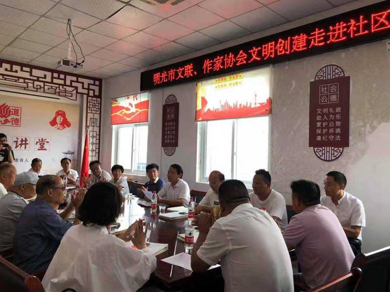 9月12日上午,明光市文联组织作家协会到明光街道龙山社区开展文明创建“作家进社区,一线写创建”对接会。市文联负责人、市作家协会负责人及部分优秀会员、明光街道相关负责人、明光街道各社区负责人参加了会议。
