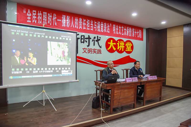 11月22日下午,由明光市文联等主办的“全民拍照时代——摄影人的责任担当与视觉表达”明光文艺大讲堂(第十七期)在嘉山书院开讲,特邀请中国摄影家协会会员、中国新闻摄影学会会员、高级记者、第十二届中国摄影金像奖获得者汪强先生授课。明光市委宣传部、市文联、市融媒体中心工作人员、市摄影家协会会员、摄影爱好者聆听了本次讲座。