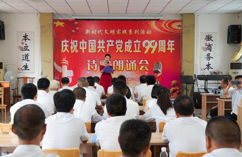 6月30日下午,“七一”前夕,明光市文联、浩淼公司党支部在浩淼国学堂联合举办新时代文明实践系列活动,庆祝中国共产党成立99周年诗歌朗诵会及文艺演出活动。以此庆祝中国共产党成立99周年,歌颂党的丰功伟绩,歌颂社会主义祖国,歌颂人民美好的幸福生活。