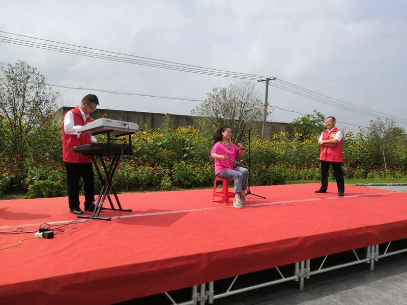 活动当天,明光市侯胡郢新时代文明实践广场上人头攒动,气氛热闹喜庆。在广场临时搭起的简易舞台上,省文艺志愿者协会的艺术家们用动听的歌声、悠扬的黄梅戏、精彩的二胡表演,为当地村民送去最暖心的问候。明光市文联的文艺表演者精心准备演出节目,开场即为深情的男女声小合唱《党旗飘飘》,一首动情激昂的女声独唱《我爱你中国》,唱出了对祖国的挚爱,唱出了老百姓的心声;二胡独奏《战马奔腾》激奋昂扬、节奏铿锵、精悍有力;扇板《坚决打赢脱贫攻坚战》更是展现了广大干部群众坚决打赢脱贫攻坚战的信心和决心;舞蹈《丰收渔鼓》描绘了渔家儿女辛勤劳作、祈盼幸福、喜获丰收的场景,曲调委婉动听,令人赏心悦目。同时,来自涧溪侯胡郢的十支广场舞代表队也纷纷走上舞台,表演了自编自演的节目并接受艺术家们的现场专业点评,场面十分热烈。