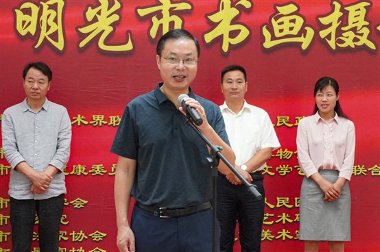 今天这个展览是明光市文联2005年成立以来,首次以主题性书画摄影剪纸艺术在滁州美术馆进行展览,展览一个月前经滁州文联党组会研究后正式确定。活动得到了明光市委、市政府的高度重视,并给予大力支持。这也是继明光近日在滁州市摄影、美术、书法双年展中取得优秀成绩后的一次汇报展览。通过艺术作品形式反映出明光抗击疫情的信心和决心。各位艺术同道要多交流沟通,相互学习,相互借鉴,以利共同提高。