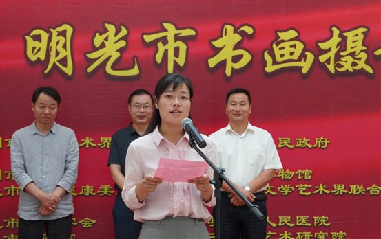 张艳在致辞中指出,在全国上下抗击疫情取得重大战略成果并进入常态化防控工作时期,在国庆、中秋佳节即将到来之际,由滁州市文联、明光市政府主办,滁州市美术馆、滁州市博物馆、明光市卫健委、明光市文联承办的“以艺抗疫”明光市书画摄影剪纸展在这里隆重举办开展仪式。首先,张艳代表明光市人民政府向莅临开展式的各位领导、嘉宾以及各界朋友表示热烈的欢迎!向滁州市文联、滁州市美术馆、滁州市博物馆等单位的大力支持、向各位文艺创作者的辛勤付出表示衷心的感谢!