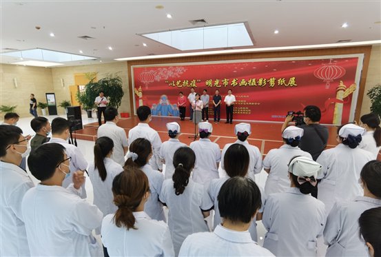 9月15日上午,“以艺抗疫”明光市书画摄影剪纸展在滁州美术馆举办开展仪式。滁州市委宣传部副部长于晓波、滁州市文联党组书记、主席张毅、滁州市文联党组成员、副主席徐红、滁州市网信办副主任朱智青、明光市人民政府副市长张艳、三界外艺术研究院院长、著名画家沉浮等出席。滁州市部分书画摄影艺术家、明光市参加援鄂、援滁医护英雄及明光市部分医护人员及部分参展作者参加了开展仪式。于晓波宣布展览开展,徐红、张艳分别致辞。