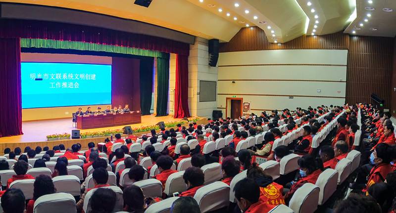 10月16日上午,明光市文联系统文明创建工作推进会在明光市文化中心多功能报告厅举办。市创城指挥部前线指挥长、市人大常委会主任吴守连、市委常委、宣传部部长马明出席会议,团市委、市民政局、明光街道、市文联、市作协等主要负责人、十个街道社区书记及十个文艺协会负责人及会员300余人参加了会议。