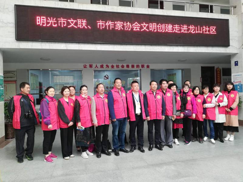 市文联及各文艺协会将牢记习近平总书记提出“四个坚持”的要求——“坚持与时代同步伐”“坚持以人民为中心”“坚持以精品奉献人民”“坚持用明德引领风尚”,紧紧围绕着明光市委、市政府的中心工作,认真扎实地开展文明创建工作,深入社区,扎根群众,内练硬功、外树形象,在文明创建工作中创作出更多更好的优秀文艺作品,为明光文艺发展繁荣,为助力早日创成全国文明城市而做出积极地努力!