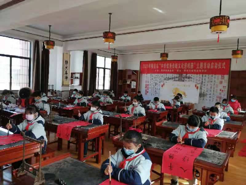 1月29日上午,明光市教体局、市文联、市文明办携手市滨河实验学校开展新时代文明实践系列活动“迎新春 送春联”暨书法进校园主题活动。
