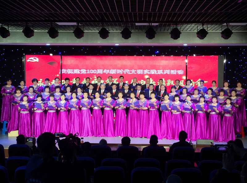 为庆祝中国共产党建党100周年,歌颂党的光辉历程,不忘初心使命,奋力谱写新时代华章,由明光市文联、明光市融媒体中心主办,明光市作家协会、明光市诗词学会协办的“永远跟党走”主题诗歌朗诵会分为“建党百年、乡村振兴、多彩明光、工业强市”四个篇章。朗诵会在童心向党组诗《祖国祖国我爱你》拉开帷幕。《我爱红色》《建党百年颂》《读方志敏烈士〈可爱的中国〉抒怀》《让爱温暖2020》等诗朗诵让人热血沸腾,感慨万千;《何郢新貌》《献给故乡的歌》展现了脱贫攻坚、乡村振兴的成果;《欢歌劲舞倡文明》《画春堂·闲话自来桥古镇》《采桑子·明光黄寨草场》《明光金泊岗》等一首首诗词曲赋道出了美好新明光建设的伟大成就,展现了青山绿水多彩明光新画卷。“一首唱了近一个世纪的老歌,始终诠释着这样一个故事,没有共产党就没有新中国,没有共产党的坚强领导,就没有家乡的巨大变化。这首歌不仅现在还唱,相信再搁10年、100年……她仍将唱响960万平方公里神州大地。今天我们就用朗诵的方式将它再次唱响。”当主持人话音刚落,由老年大学56名学员诗朗诵《我们爱唱一首歌,没有共产党就没有新中国》将整台诗歌朗诵会推向高潮。最后,朗诵会在明光市音乐家协会激情澎湃的诗朗诵《奋起直追,工业强市谱新篇》落下帷幕。