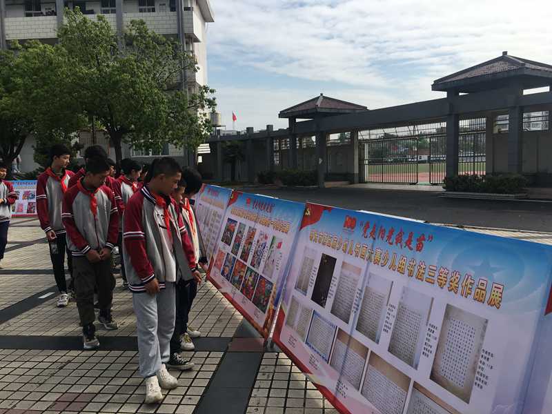 “党是阳光我是苗”明光市第五届少幼儿书画大赛获奖作品在实验小学展览后,将在明光城区中小学校进行巡回展览。