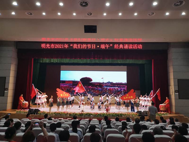 6月11日下午,明光市2021年“我们的节日·端午”经典诵读活动在市文化中心小剧场举办,市政府副市长张艳、市委宣传部副部长李明富出席活动,本次活动由市委宣传部、市文明办主办,市文旅局、市融媒体中心、市教体局、市文联承办。