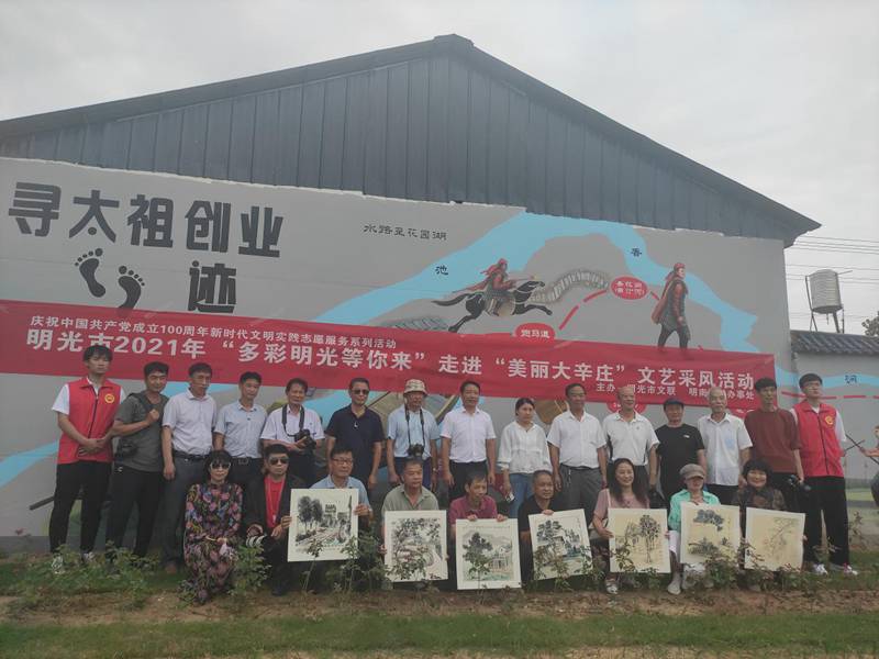 8月26日 明光市文联组织美术、诗词、摄影等协会部分画家、诗人、摄影家走进明南街道大辛村辛西组,开展采风活动。辛西组由明横公路穿境而过,坐落在南沙河畔西岸,是传说中明皇早膳地,不仅有省级文保单位“辛氏炮楼”。还有美妙的传说。