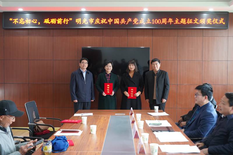 讲好党史故事,传承红色基因。11月29日下午,“不忘初心,砥砺前行”——明光市庆祝中国共产党成立100周年主题征文比赛颁奖仪式在明光市文联会议室举行。明光市政协副主席吕锦宏、市老年大学副校长傅守乾出席并颁奖,市文联、市教体局、市政协文史委、市作家协会、市诗词学会负责人、获奖作者等参加了颁奖仪式,明光市文联主席主持颁奖仪式。