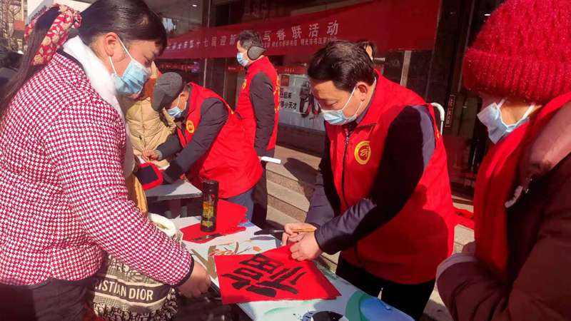 “给我写个‘凌风扬虎威,接地鼓牛劲’吧!”“帮我多写几个大‘福’字!”“好的,别急,一个一个来,都有哟!”活动现场上,文艺轻骑兵志愿者和市民亲切地对话。市民们手捧一副副对联喜笑颜开,现场洋溢着浓浓的年味。当日,志愿者为广大市民书写乡村振兴、文明创建、工业强市、招商引资等方面内容的春联1200余副、“福”字500余个,受到群众的欢迎。