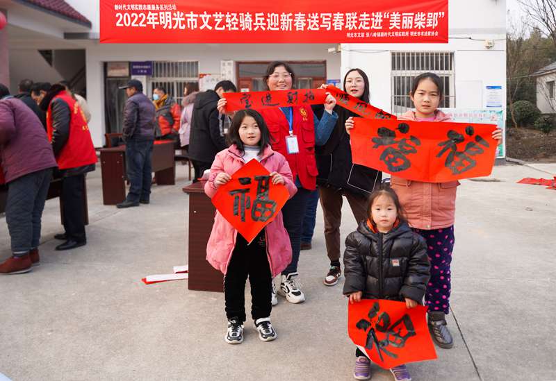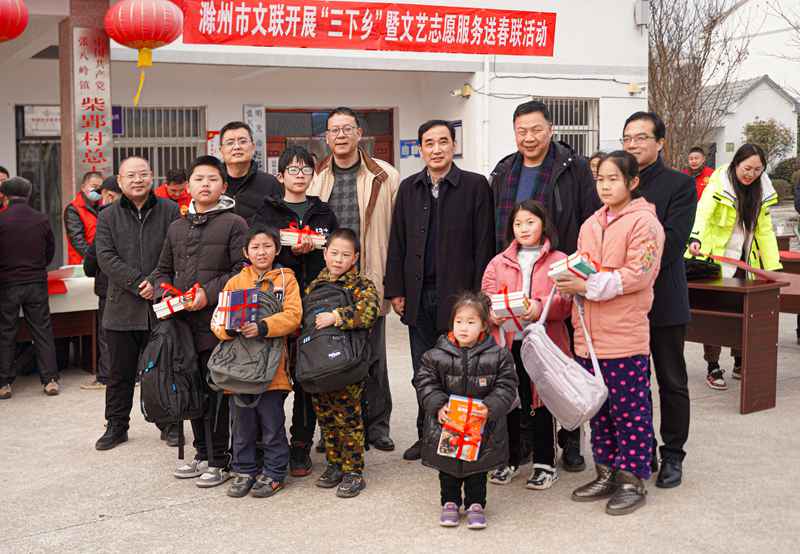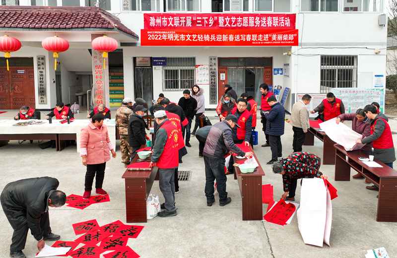 虎啸青山千里锦,风拂绿柳万家春。1月19日下午,18位滁州市、明光市文艺志愿者前往明光市张八岭镇柴郢村开展定点帮扶,为老百姓送写春联、创作国画。滁州市政协副主席高潮、滁州市文联党组书记、主席张毅、明光市政协主席张言平等领导参加活动,并向留守儿童赠送学习用品。