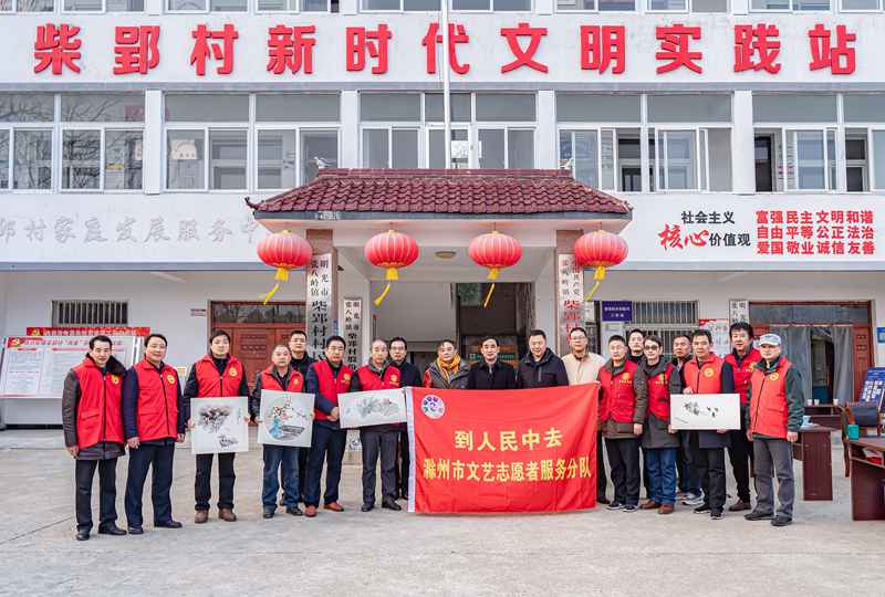 滁州著名书画家戴武、徐士彬、吴德庆、王元国等文艺志愿者积极热情地为柴郢村老百姓送写春联500余副、“福”字100余个,并为留守儿童创作国画作品9幅,受到柴郢村老百姓的欢迎。