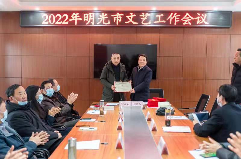 会议对2021年明光文艺工作进行了总结和回顾。2021年,明光市文联开展了16项庆祝中国共产党成立100周年系列文艺活动;明光文艺活动工作登上了《安徽日报》头版头条;明光文艺助力乡村振兴工作得到了来明调研的省文联党组书记、书记处第一书记何颖的高度肯定;明光美术、摄影作品取得了历史性突破,吴开山国画作品《1922朱德赴欧》、王冰摄影作品《幽桥行舟》分别入展中宣部、中央党史馆重大历史题材创作项目和中国第18届国际摄影艺术展览等。会议对取得的成绩与不足进行了分析与反思;对2022年的工作安排进行了细化和落实。