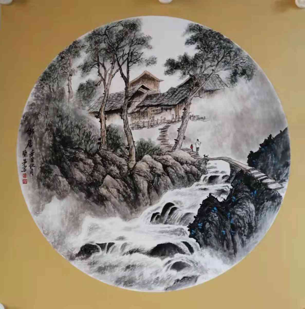 13.山水团扇 乡居 钟兰弟 画