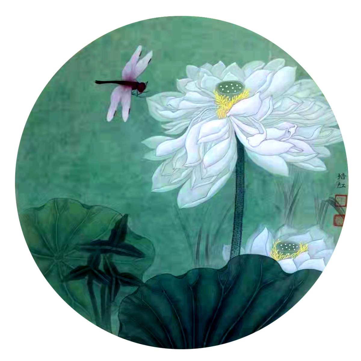 16.花鸟团扇 青莲 刘培红 画