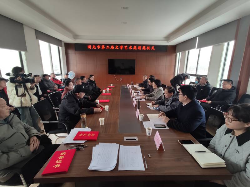 2月7日下午,明光市第二届文学艺术奖颁奖仪式在市文联二楼会议室举行,副市长缪传凤出席并为获奖作者颁奖。市文艺奖评选单位分管领导和获奖作者参加了颁奖仪式。