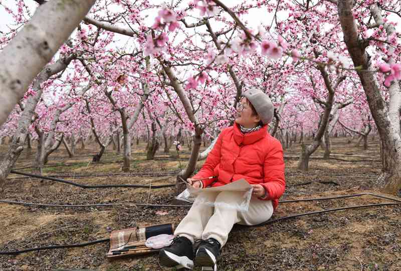 青山如黛,桃林尽染,逶迤连成一片梦幻的粉色,把春光渲染得分外明媚......