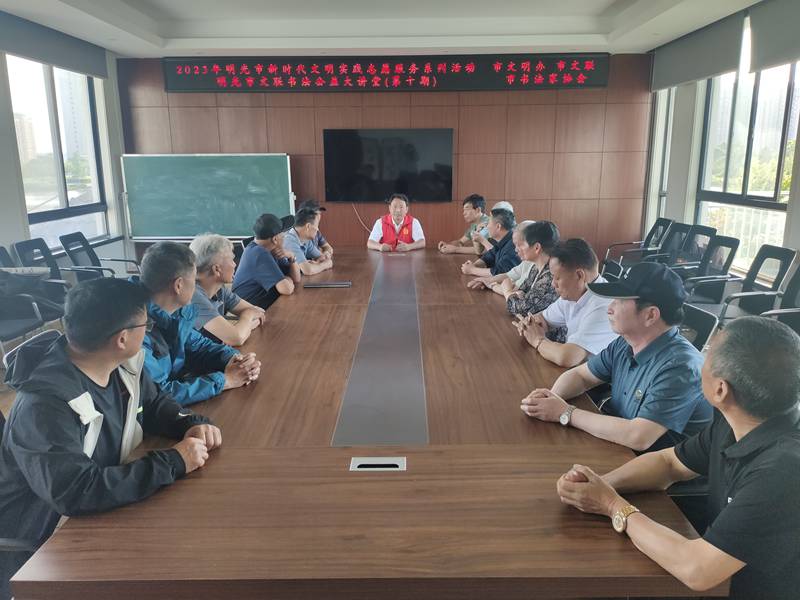 5月23日下午,由明光市文明办、市文联、市书法家协会共同举办的新时代文明实践系列活动,明光市文联书法公益讲座(第十期)在市文联二楼会议室举行。近20名书法爱好者学员参加,讲座由滁州市书法家协会副主席、明光市文联主席任亚弟主持。