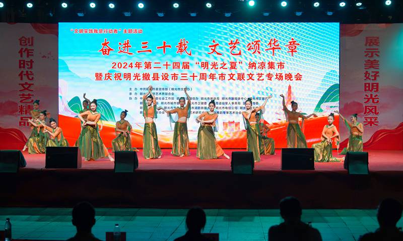7月16日晚,由中共明光市委宣传部(明光市文明办)主办,明光市文学艺术界联合会承办的“奋进三十载 文艺颂华章”庆祝撤县设市三十周年市文联文艺专场晚会在明光市体育馆东广场举办。明光市领导冉磊、汪乾坤、张德莉等到场观看演出。