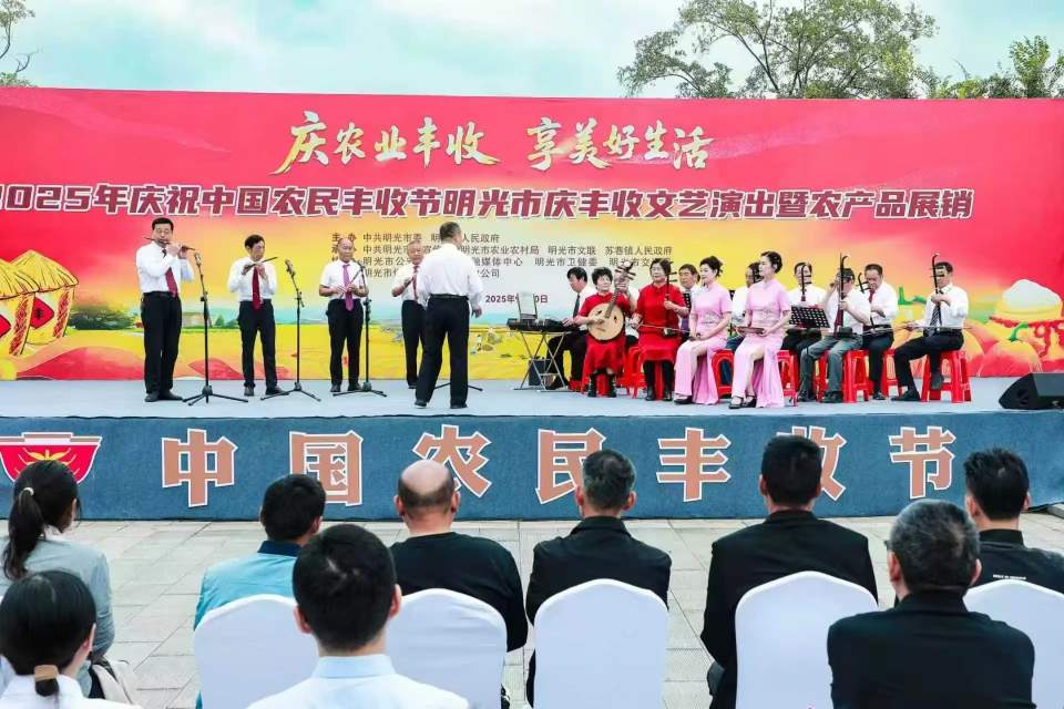9月20日,皖东大地,金秋送爽,稻菽千重,五谷丰登。明光市以“庆农业丰收,享美好生活”为主题的2025年庆祝中国农民丰收节文艺演出暨农产品展销活动在苏巷镇大罗郢隆重举办。
