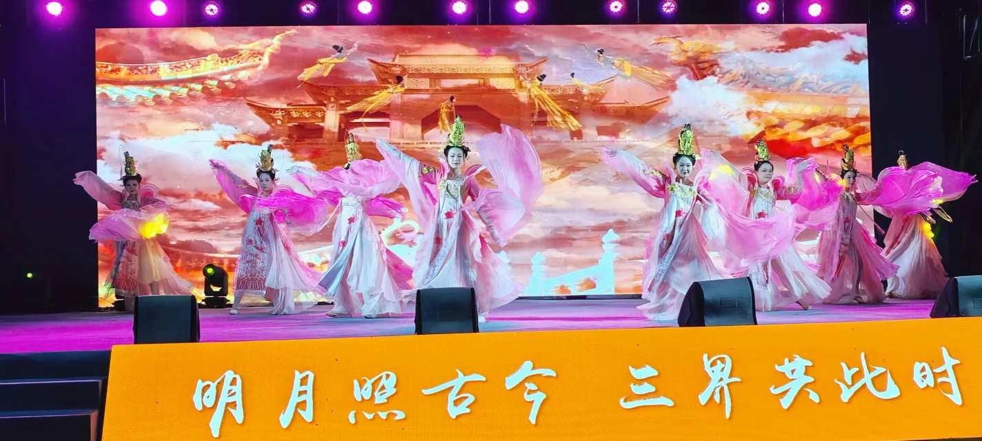 在文艺演出活动开始前,大型显示屏滚动播放微电影《三界外》、明光旅游宣传片。当晚7时许,文艺演出活动在舞蹈《凤舞明光》拉开序幕。随后,古装秀《礼仪之邦》、独唱《有一个小村庄》、舞蹈《相思谣》、民乐小合奏《花好月圆》、歌曲《望月》《江山无限》《斯卡布鲁集市》、萨克斯《回家》、京剧《祖国的好山河寸土不让》、非遗钱杆舞《钱杆醉明城》、唐代古装秀《簪花仕女》等一个个精彩节目轮番上演。