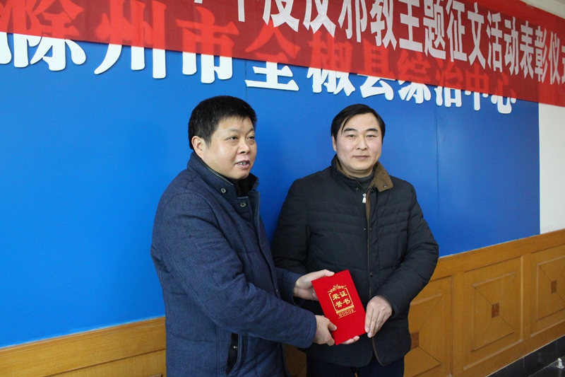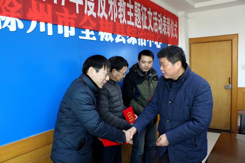 12月18日,全椒县政法委、全椒县文联在县政法委会议室举行全椒县首届“反邪教”征文颁奖活动,县委常委、政法委书记曹宏华出席活动,获奖作者、县作家协会部分会员参加了活动。活动由县文联党组成员、副主席宋玲及宋玲主持。