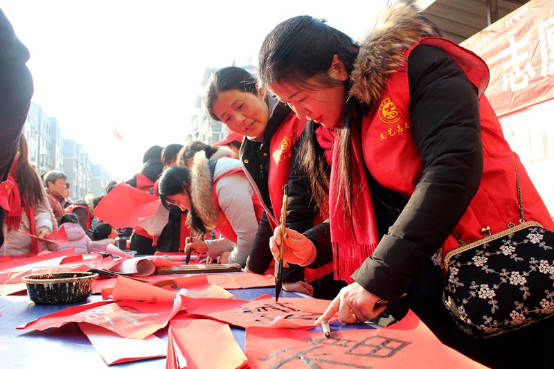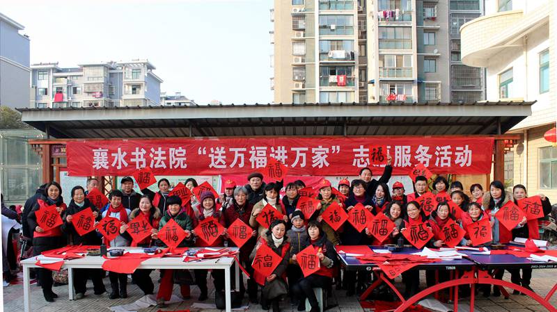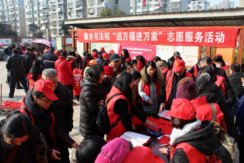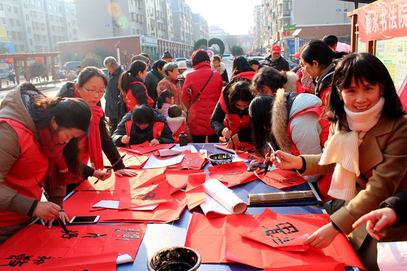 2月8日,全椒县文联组织襄水书法院40余名文艺志愿者走进襄河镇城南社区,为附近居民送春联送“福”。从下午两点半开始至傍晚五时许,志愿者们为陆续赶来的居民义务书写春联和“福”字两千余福。 临近春节,县文联、县书画协会、襄水书法院持续开展了“送万福进万家”到乡镇、进社区、进企业活动,书写赠送春联10000余幅,参与者达100余人次,广大书法爱好者们以群众喜闻乐见的传统笔墨形式,营造节日氛围,传达县委、县政府对百姓们的新春祝福。