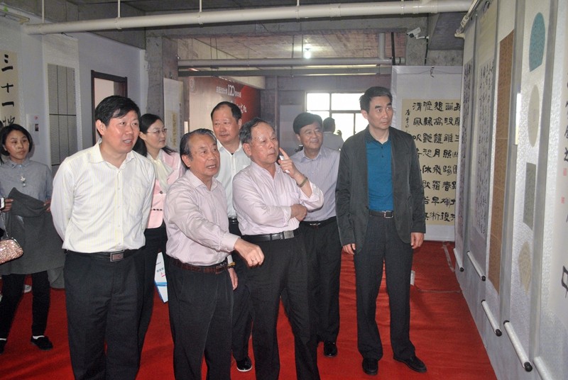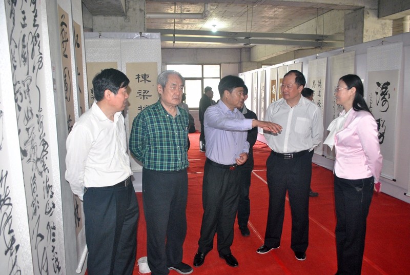 4月29日上午,安徽江海集团收藏北京大学首届书法研究班学员书法作品展在江海紫金城开幕。省政协原常务副主席秦德文,铜陵市委原书记蔡木森,滁州军分区司令员方平,县人大常委会主任杨勇,县政协主席董光林,副县长尚云,县政协副主席张华,县人大常委会原副主任秦锦章,县委宣传部、县文联有关负责人,以及县书画协会成员、襄水书法院部分学员,来自县内外的众多书法爱好者,出席开幕式并观看了展览。