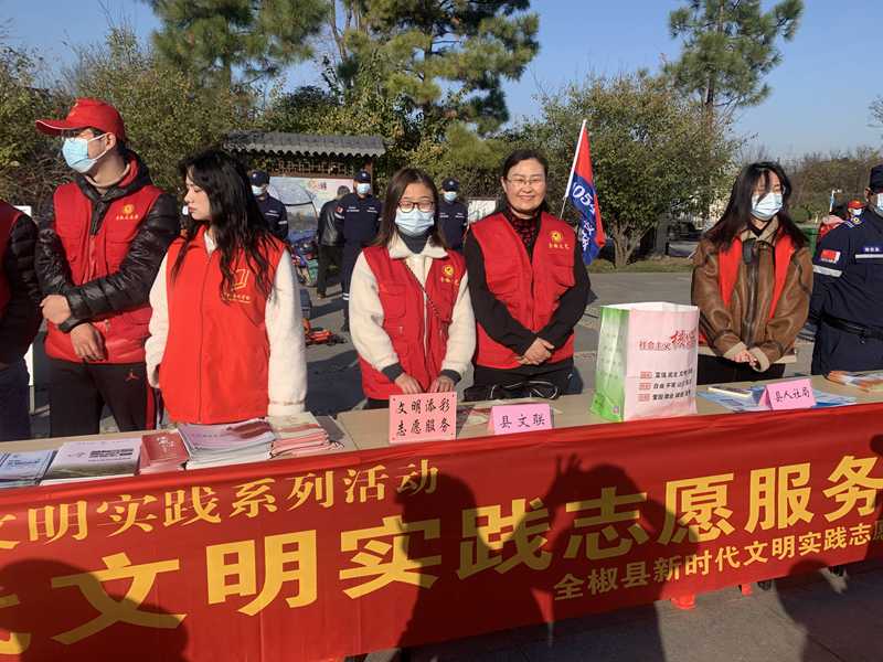 此次活动,县文联把“我为群众办实事 志愿服务我先行”与文艺本职工作相结合,一方面组织宣讲小分队即襄水乡音文艺宣讲志愿服务队为现场群众表演十多首民歌、歌伴舞、黄梅戏、天津快板等文艺宣讲表演,另一方面组织宣传小分队文艺志愿者开展文明创建系列+活动宣传,发放移风易俗、勤俭节约、保护环境等宣传手册。