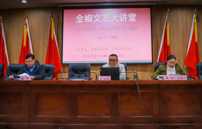 为繁荣全椒文艺创作,提升全椒作者的阅读效果和创作水平,12月5日上午,安徽小岗干部学院副院长、滁州市文联副主席、中国作家协会会员、安徽省作家协会理事、滁州市作家协会主席贾鸿彬先生做客“全椒文艺大讲堂”,开展文学公益讲座活动,讲授《阅读方法和写作方向》。本次讲座由全椒县文联、县社科联主办,县作家协会协办,县文联党组书记、主席宋玲主持讲座。来自县作家协会、县作协诗词分会的50余名会员及文学爱好者聆听了讲座。