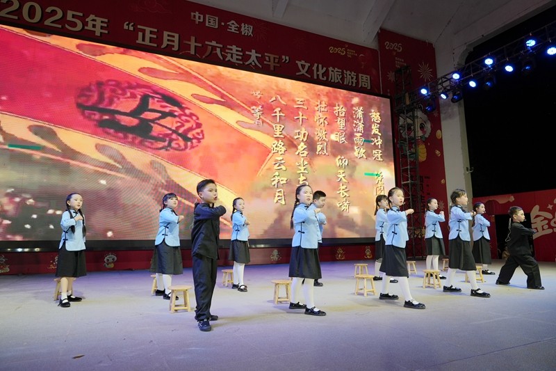晚会在开场舞《盛世国乐》中拉开帷幕,舞者们身着绚丽的服装,以优美的舞姿展现了全椒的繁荣与活力,瞬间点燃了现场气氛。小合唱《向往》歌声悠扬,表达了人们对美好生活的憧憬;少儿舞蹈《池上》童趣盎然,孩子们用纯真的表演赢得了观众们的阵阵掌声。音诗画《黄河黄河》气势磅礴,小小朗诵者激情澎湃的声音与背景画面、音乐完美融合,展现了黄河的雄浑壮阔,也抒发了对祖国母亲河的热爱与赞美之情。舞蹈《戏文说》将戏曲元素与舞蹈巧妙结合,演员们的水袖翻飞、身姿婀娜,尽显传统戏曲文化的独特魅力。女声小合唱《山丹丹花开红艳艳》,那高亢嘹亮的歌声,将观众带回了那段激情燃烧的岁月,让人们感受到了革命精神的力量。架子鼓表演《我乃哪吒三太子》活力四射,鼓手们富有节奏感的敲击,仿佛让哪吒的形象跃然眼前,现场气氛热烈。全椒民歌《张家大姐真好看》以其独特的地方韵味,展现了全椒的风土人情,熟悉的旋律让台下观众忍不住跟着哼唱。古筝表演《惊蛰》,琴弦拨动间,仿佛唤醒了万物复苏的春天,灵动的音符流淌在夜空中,给人以美的享受。舞台剧《铁血长歌》通过精彩的演绎,再现了历史的波澜壮阔,小演员们精湛的演技让观众沉浸其中,深刻感受到了先辈们的英勇无畏。少儿舞蹈《傣族姑娘》,孩子们化身美丽的傣族少女,灵动的舞姿、甜美的笑容,将傣族风情展现得淋漓尽致。非洲鼓表演《DaDaDa》节奏欢快,充满了异域风情,带动现场观众一起摇摆。舞蹈《八朵云》作为全椒县省级非遗,舞者们用轻盈的舞步和优美的姿态,展现了这一传统艺术的独特魅力。晚会在童声合唱《童声里的中国》中落下帷幕,孩子们清澈纯净的歌声,唱出了对祖国的热爱和对未来的美好期许 。