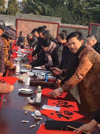 红色龙岗在新年来临之际,大街小巷,张灯结彩,年味浓浓,笑声欢语,热闹喜庆,铜城特色笼糕、状元饼、芡实果等食品物阜丰富,鸡鸭鱼肉鲜活靓美,家庭生活用品丰富齐全。近千名群众闻讯赶到抗大广场,认真欣赏书画家们挥毫泼墨书画春联佳作,大红对联万事如意,大红福字平安吉祥,美术作品国色天香,新年挂历山河锦绣。群众们争相选择艺术佳作,高兴而来,喜获而归。面对群众的需求,书画家们有求必应,服务认真到位,态度和蔼可亲。真正体现了我们的中国梦,文化进万家与广大群众心连心的亲情。
