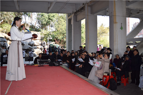 活动以开展移风易俗,孝老爱亲,同怀中国梦,追思寄亲人为主题,表演了诗歌朗诵《唯美中国》、《迎春花》、《红梅赞》、《清明》、《美丽家园》、《家风家训》等诗歌30多首。表达对祖国家乡的深情厚爱和对追思亲人的深切怀念。上千名游园观众前来观看和聆听,演出结束还为朗诵爱好者进行了业务辅导,气氛融洽,天长市文联茉莉花文艺志愿服务队全程服务,活动获得圆满成功。