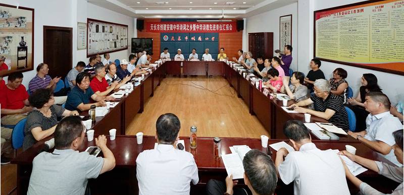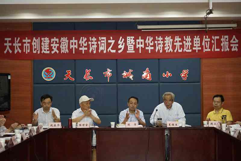 天长市文联创建领导组组长、天长市诗词学会会长刘恒昌专题汇报了天长诗词学会的基本情况和发展状况。诗教单位代表汇报了诗教工作开展情况。