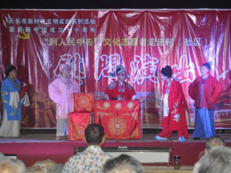 近年来,天长市文联组织广大文艺志愿者者,积极开展文艺志愿服务活动,依托“到人民中去”“深入生活、扎根人民”“乡村大舞台”“庆祝党的十九大”“新风文艺轻骑兵小分队”等平台,将优秀文艺演出、优秀文艺作品展示、文艺培训、群众性文艺演出送到基层,受到群众的欢迎和赞誉。