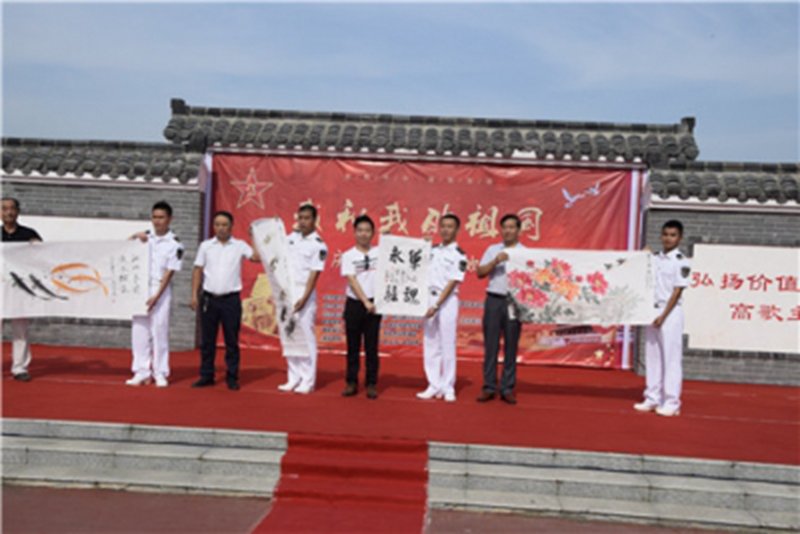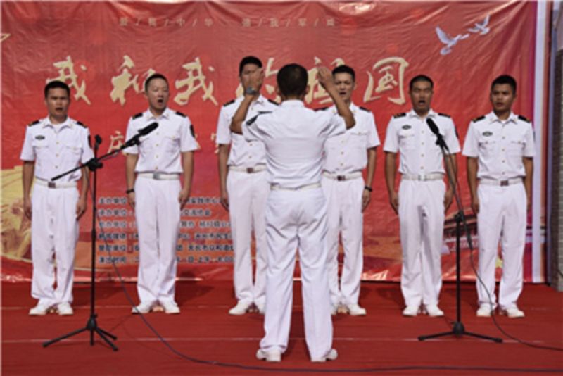 天长市文联"舞动千秋"文艺志愿服务小分队冒着酷署,与驻小关社区海军部队官兵和社区群众军民联欢,庆祝八一建军节。演出节目丰富多彩,海军官兵合唱《强军战歌》,诗朗诵《铸剑海南》,舞蹈《洗衣歌》,独唱《亲吻祖国》等13个节目,军民互动,欢声笑语,其乐融融。天长市文联文艺志愿者刘恒昌、徐明江、夏锡涛、孙连秀、徐佐章还向海军官兵创作赠送"国色锦绣"、"军魂永驻”等书画作品,向最可爱的人致敬,活动充满军民鱼水情谊,共同庆贺建军92周年,向伟大祖国70周年华诞祝福。