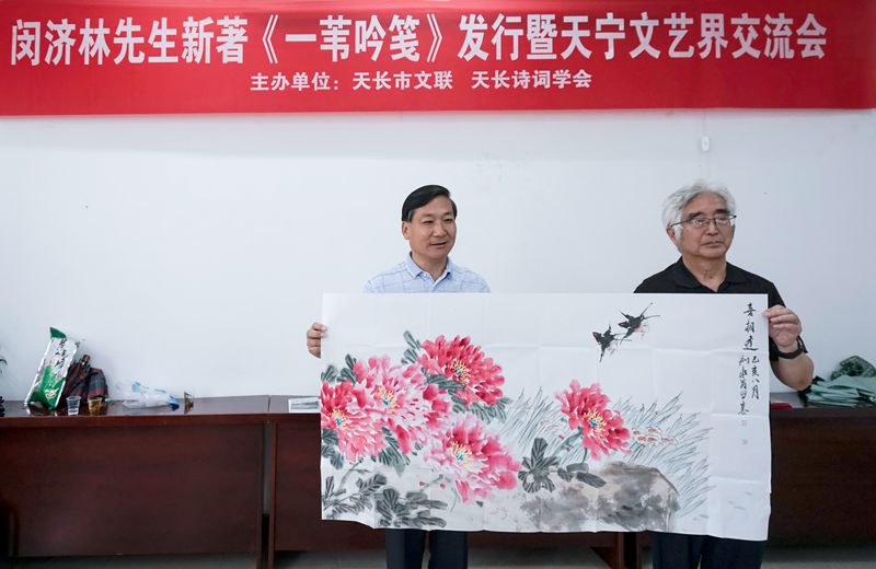 8月10日, 仲夏秋爽、赏书纳凉。在喜迎新中国成立70周年之际,天长市文联、市诗词学会举办闵济林先生新著《一苇吟笺》诗集发行暨天宁文艺界交流会。天长市人大、市政协、市关工委等领导,江苏吴门诗社、金陵诗社、加中诗词学会和宁社等同仁,天长市诗会顾问、市档案馆、市图书馆负责人以及闵济林的好友、同学、文友,宣传媒体的朋友参加活动。活动由天长市文联负责人、市诗词学会会长刘恒昌主持。