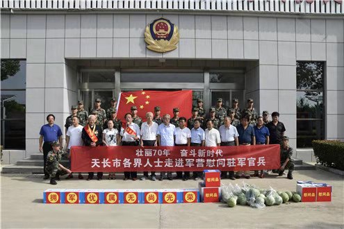 9月12日,在中秋国庆佳节来临之际,天长市文联组织省双拥模范老人毕嘉峰、好人代表和部分爱心公益人士,带着月饼、西瓜及生活用品,走进军营、警营,慰问人民子弟兵,向他们致以节日的问候。老同志夏锡生、吕思奎,抗日老战士岑德标、抗美援朝老战士薛志和应邀出席。