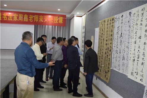 讲座邀请第十二届全国书展草书、行书作品入展作者,中国书协会员、安徽太和书协副主席周鑫先生授课,全市书法工作者、爱好者30多人参加聆听。
