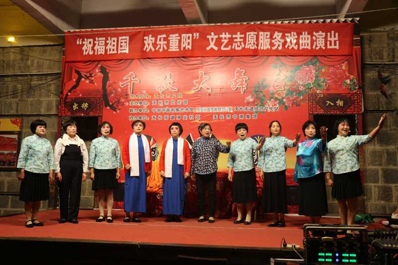 10月7日,重阳节,天长市文联“舞动千秋”文艺志愿服务队在滨河公园千秋大舞台组织文艺演出,以演唱“祝福祖国、欢乐重阳”为主题的文艺节目,为祖国生日和重阳节老人送祝福,深受欢迎。