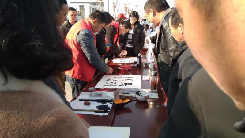 12月4日,天长市文联组织文艺志愿者到金集镇,参加天长市2019年“12·4”国家宪法日宣传活动,以法治文化书法作品的形式开展普法宣传。