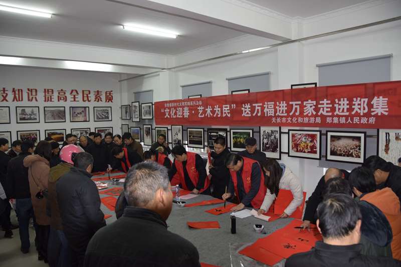 1月16日,天长市文联文艺志愿者刘恒昌、周杰、郭中华、陈云海、赵长云、王建国等参加天长市文化科技卫生"三下乡"走进郑集镇。